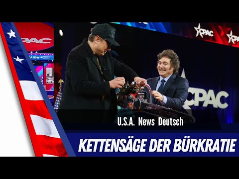 Präsident Milei schenkt Elon Musk eine Kettensäge der Bürokratie.